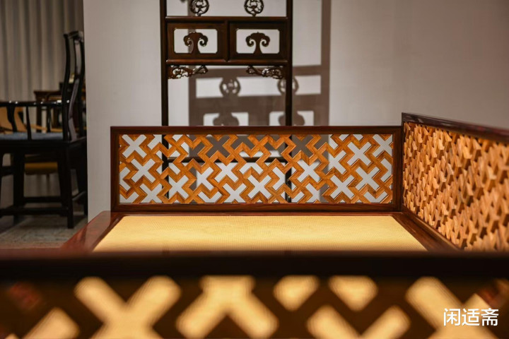 整器制作工艺考究,床围榫卯攒接万字纹,纹路规整流畅,寓意吉祥绵长,尽显雕刻技艺;经典马蹄腿大料整挖,线条圆润有力,保证稳固性的同时彰显庄重雅致;床面采用优质藤材手工编织,透气舒爽、久坐不闷汗,贴合人体工学;纯榫卯结构打造,无钉无胶、衔接紧密,搭配冰盘沿圆润打磨,兼顾耐用与细腻。